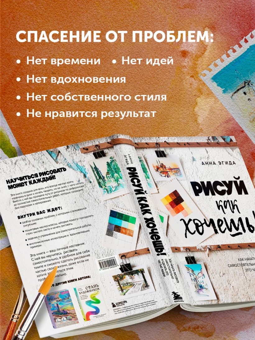Вместе с автором, художницей Анной Эгидой, вы узнаете, как вписать увлечение в плотный график и быстро войти в состояние творческого потока после тяжелого дня, где найти силы на творчество любого масштаба, как рисовать самостоятельно, а не копировать другие работы, а также как создать среду, которая будет помогать творчеству дома, на работе и даже на природе.