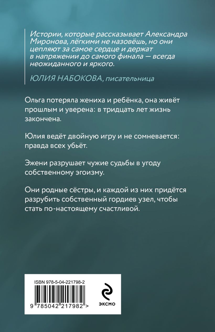 Ольга потеряла жениха и ребёнка, она живёт прошлым и уверена: в тридцать лет жизнь закончена. Юлия ведёт двойную игру и не сомневается: правда всех убьёт. Эжени разрушает чужие судьбы в угоду собственному эгоизму. Они — родные сёстры, и каждой из них придётся разрубить собственный гордиев узел, чтобы стать по-настоящему счастливой.