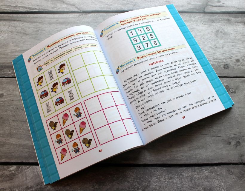 Выполняя занимательные игровые задания, ребёнок познакомится со звуками; разовьёт мышление, артикуляционный аппарат, слуховую, зрительную, моторную и наглядно-образную память; повысит скорость зрительного восприятия и улучшит концентрацию и переключаемость внимания; научится работать с текстом и отвечать на вопросы; потренирует навыки устного счета; разовьёт речь; расширит кругозор и, что самое главное, получит инструменты для работы с информацией, т. е. научится классифицировать, систематизировать, группировать, объединять, сравнивать, комбинировать информацию. Именно эти навыки позволят ребёнку успешно учиться в школе и раскрыть все свои таланты.