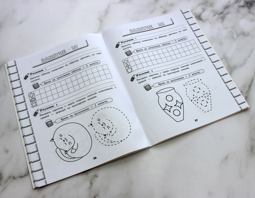 Выполняя увлекательные игровые задания в указанной последовательности, ребёнок будет заполнять таблицы по образцу, штриховать и дорисовывать предметы, выполнять упражнения на развитие бинокулярного зрения, считать до 25 с опорой на числовые таблицы, а также быстро овладеет способами восприятия, запоминания и обработки информации и, как следствие, добьётся высоких результатов в обучении.