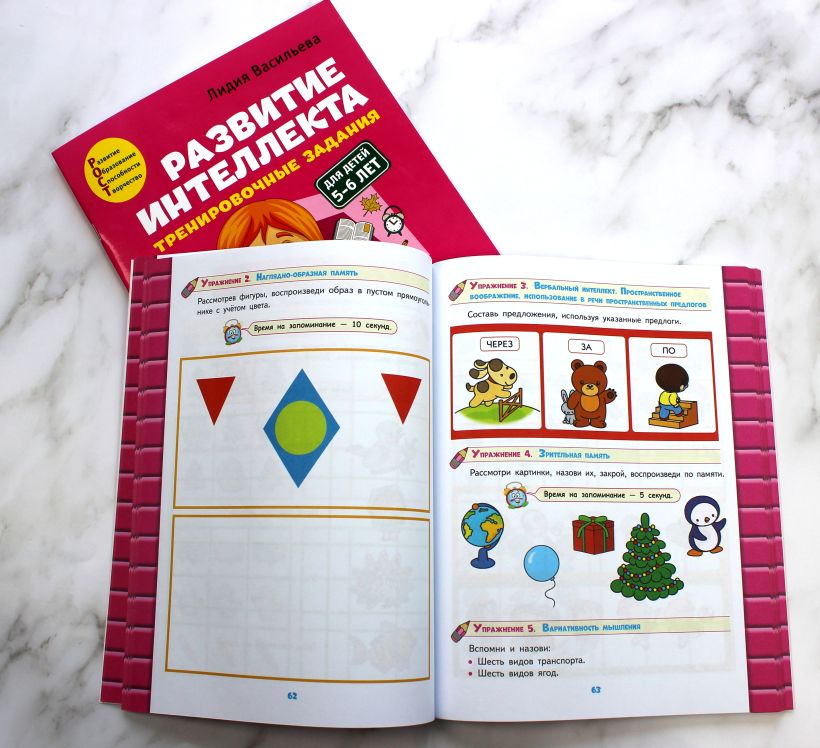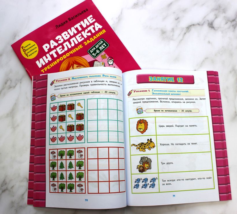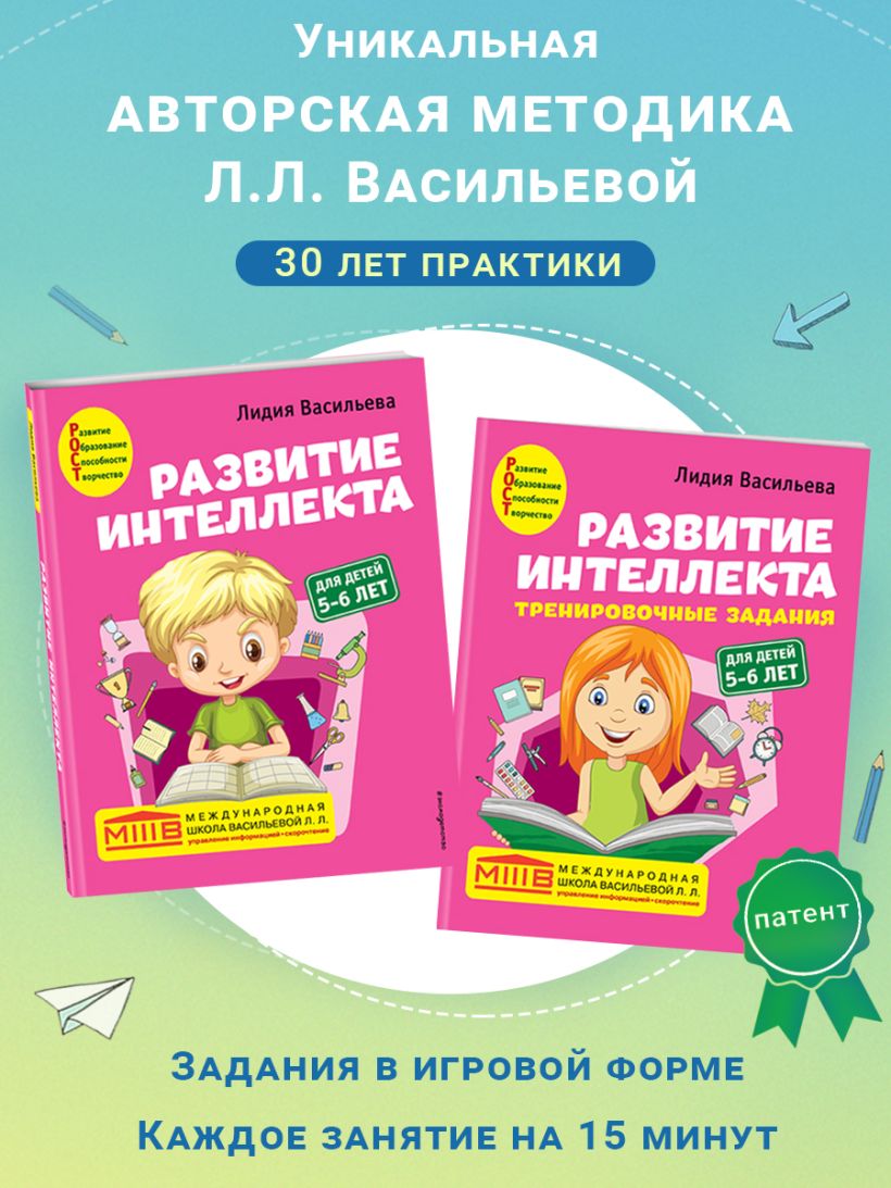 В основу книг, входящих в комплект «Развитие интеллекта (пособие + рабочая тетрадь): для детей 5—6 лет» положена авторская методика Л.Л. Васильевой, получившая свидетельства, выданные Российским авторским обществом, Бюро регистрации авторских прав США, Канадским управлением интеллектуальной собственности, апробированная в сети Школ скорочтения и управления информацией и показавшая высокие результаты по всему миру. По программе Л.Л. Васильевой официально работают более чем в 150 школах в 89 городах России и Европы.