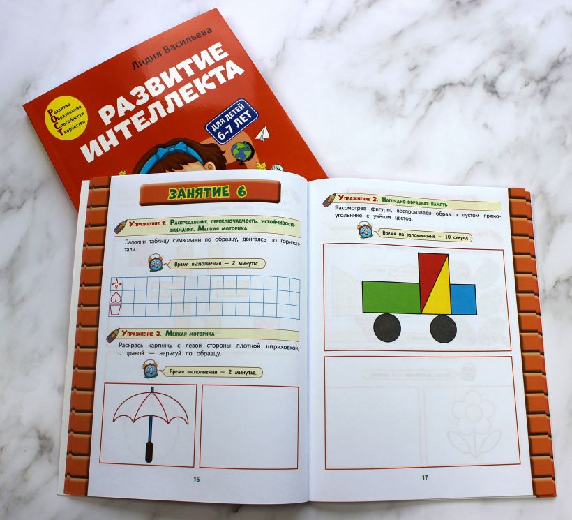 В основу книг, входящих в комплект «Развитие интеллекта (пособие + рабочая тетрадь): для детей 6—7 лет» положена авторская методика Л.Л. Васильевой, получившая свидетельства, выданные Российским авторским обществом, Бюро регистрации авторских прав США, Канадским управлением интеллектуальной собственности, апробированная в сети Школ скорочтения и управления информацией и показавшая высокие результаты по всему миру. По программе Л.Л. Васильевой официально работают более чем в 150 школах в 89 городах России и Европы.