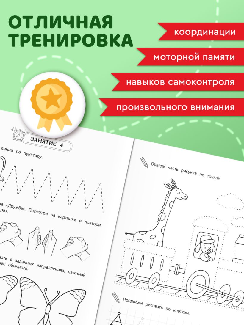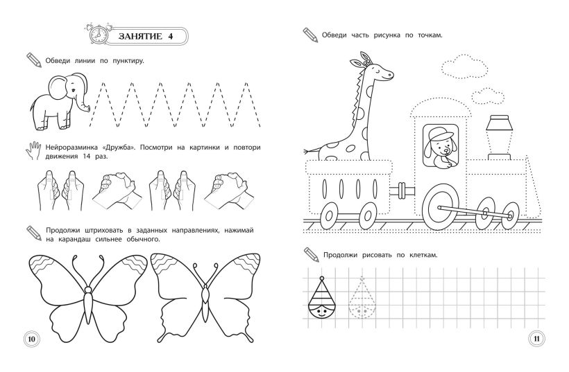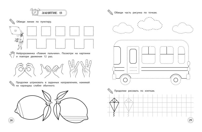 Пособие станет отличным помощником в развитии мелкой моторики и навыков письма у старших дошкольников. Методика, использованная в пособии, учитывает нейропсихологические методы обучения и гарантирует высокий результат. Задания, представленные в книге, доступны и разнообразны, что позволит ребенку менять виды деятельности и не уставать. Выполняя разноплановые игровые упражнения, дошкольник будет обводить картинки по пунктиру, развивая пространственные представления и навыки ориентации на листе бумаги; штриховать, нажимая на карандаш то сильнее, то слабее, регулируя напряжения мышц; рисовать на клетчатом поле, стараясь не выходить за его границы; проводить разные типы линий, которые по сути являются элементами букв.