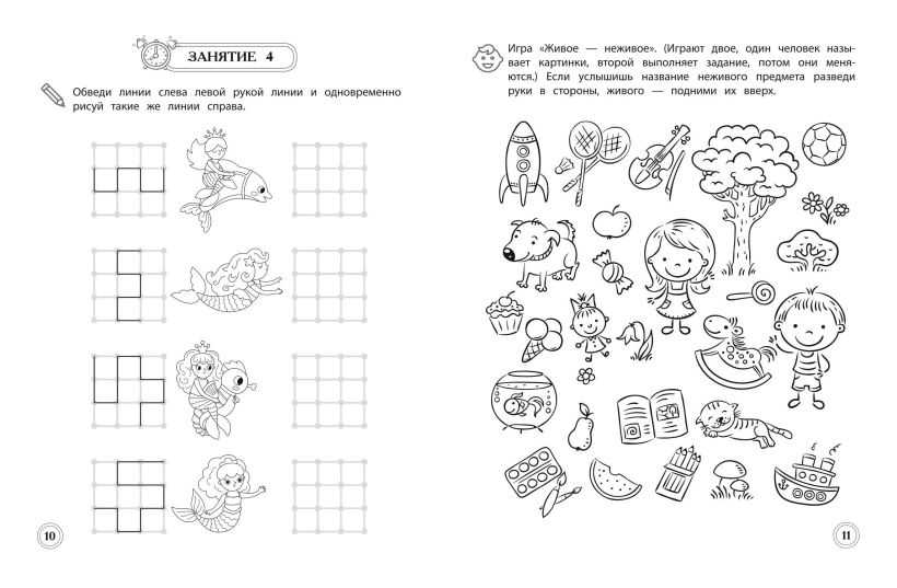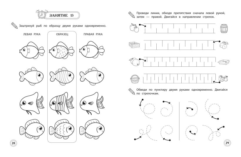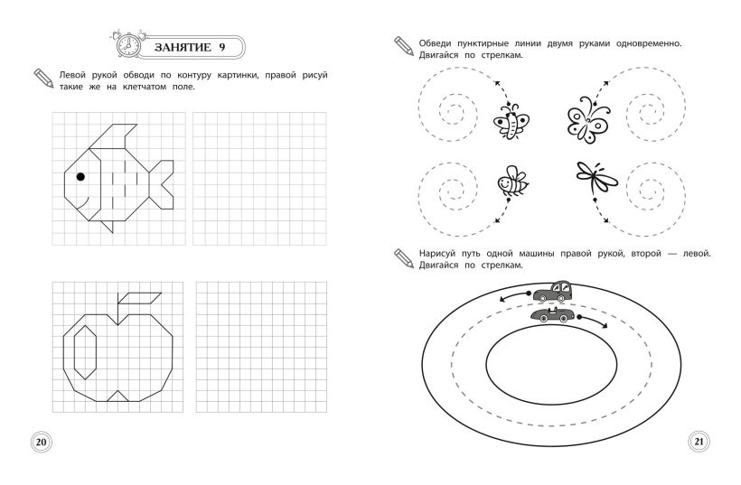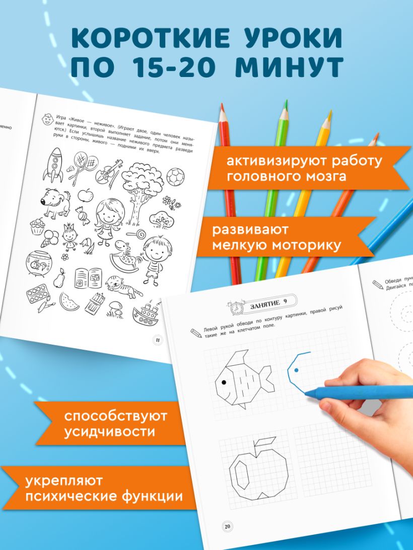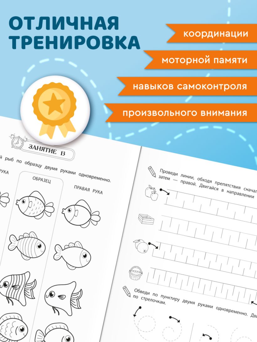 Увлекательные практические задания и нейропсихологические упражнения помогут дошкольнику укрепить пальчики и будут способствовать развитию координации руки и глаз, а также дадут возможность родителям провести развивающее занятие без помощи специалистов. Занимаясь, ребенок будет обводить пунктирные линии и раскрашивать двумя руками одновременно, рисовать и копировать по клеткам, обходить препятствия, штриховать по образцу. Кроме того, ребенок сможет потренировать внимание, память, расширит кругозор, станет более усидчивым и аккуратным. Все это позволит ему прийти в школу подготовленным и уверенным в себе.