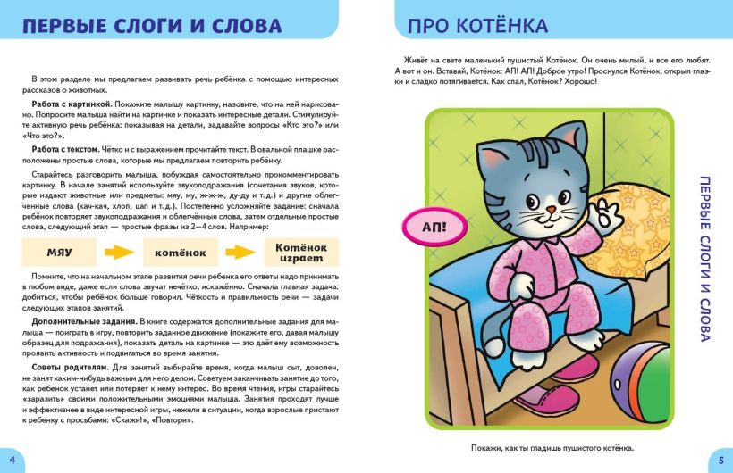 Развитие устной речи — один из самых важных приоритетов для малышей, которые только-только начали говорить. Занимаясь по этой книге и выполняя простые задания по красочным иллюстрациям, ваш ребёнок научится отвечать на вопросы, описывать предмет, обращая внимание на его основные свойства, а также пересказывать по картинкам.