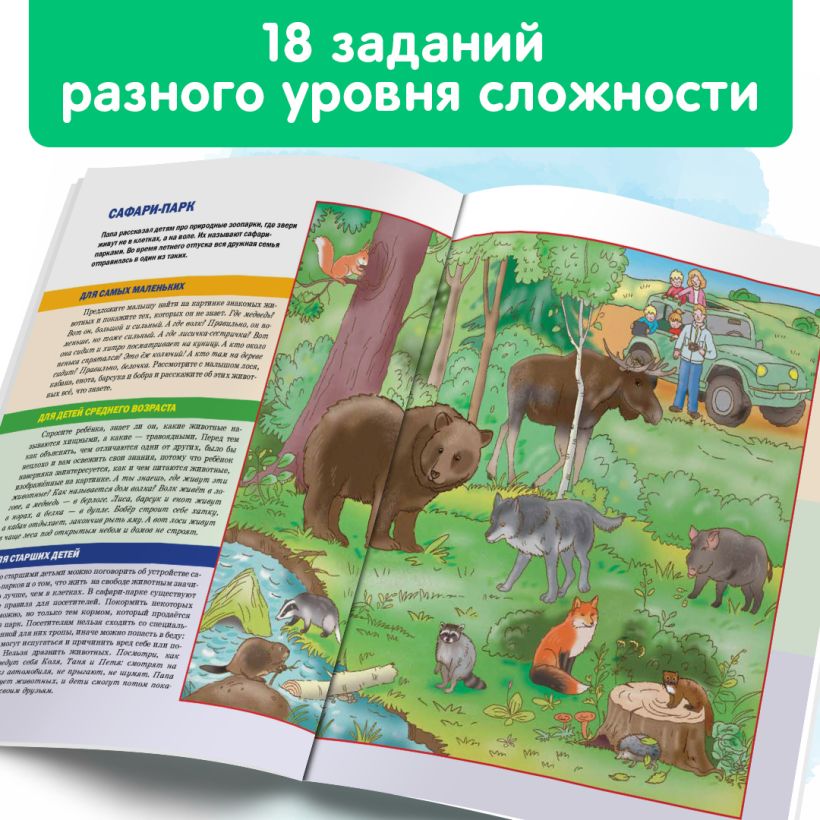 Популярное пособие по расширению кругозора и обогащению словарного запаса ребенка. Упражнения и методики разработаны на основе любимой детьми темы о животных, что позволит быстро и легко вовлечь ребенка в процесс обучения. В книге вы найдете красочные и подробные иллюстрации, по которым ребенок может учить новые слова и практиковаться в правильном изложении своих мыслей. Интересные факты о животных делают детскую книгу интересной и полезной для развития речи. Опорные тексты, вопросы и рекомендации трёх уровней сложности, разделенных по возрасту (0,5-2; 2-4; 4-6 лет). Книга предназначена не только для малышей, которые только учатся говорить, но и для обогащения речи хорошо говорящих детей. Все эти упражнения и советы несомненно окажут положительное влияние на развитие каждого ребенка и помогут в подготовке к школе.