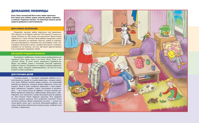 По книге можно заниматься как с малышами, у которых только начинают появляться звуки или "лепетные" слова, так и с хорошо говорящими детьми. Даже если вам кажется, что ребенок уже "взрослый" и не испытывает проблем со связной речью, вы обязательно воспользуетесь профессиональными советами и приемами по поощрению речевой активности, увеличению словарного запаса, умению по картинке составлять связный рассказ.