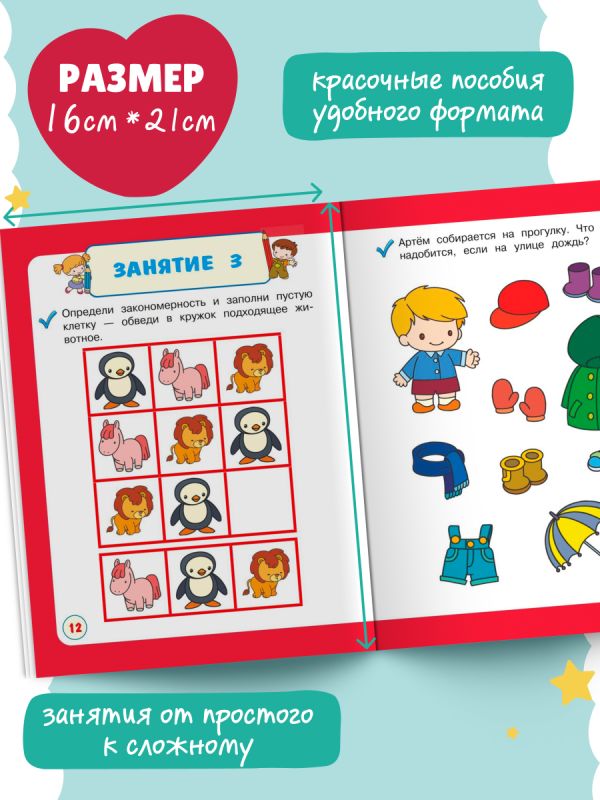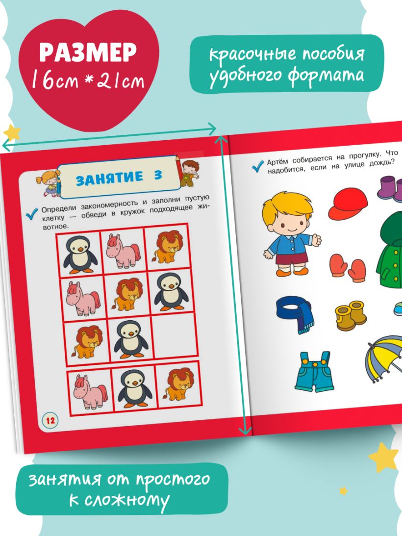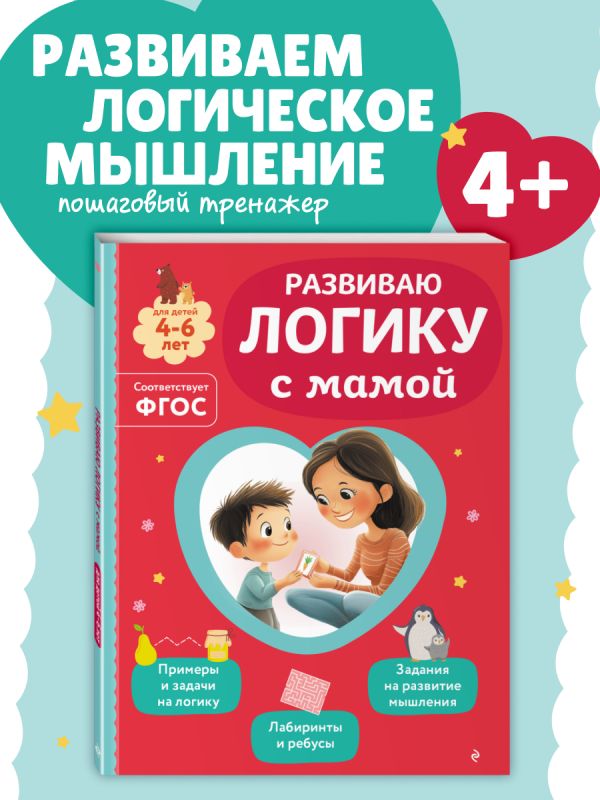 Логика помогает ребенку делать правильные выводы, задавать точные вопросы, и развивать ее нужно как можно раньше. В нашем пособии мальчики и девочки найдут разноплановые игровые задания, направленные на быстрое развитие логического мышления. Занимаясь, ребенок будет принимать решения и обосновывать их, размышлять, проходить лабиринты, решать логические примеры, задачи, головоломки, а также сможет потренировать внимание и мелкую моторику. Вместе с этим пособием каждое занятие превратится в интересное приключение, и ребенок не заметит, как пролетит время. Книга-развивашка, предназначенная для совместных занятий мамы и ребенка, станет надежным помощником в процессе подготовки к школе. Простые задания легко выполнять дома, на прогулке или в дороге. Обучение, проходящее виде веселой увлекательной игры, поможет ребенку не только развить ключевые навыки, но и почувствовать уверенность в своих силах. Развивающее пособие идеально подойдет для занятий с детьми 4, 5, 6 лет, так как учитывает их особенности восприятия и интересы. Рекомендуем также приобрести другие книги серии: «Читаем вместе с мамой», «Считаем вместе с мамой», «Пишем вместе с мамой», «Развиваем внимание и память вместе с мамой».