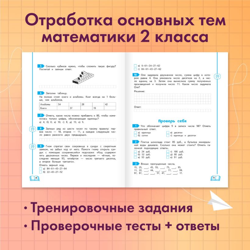 Тренажёр по математике удобен и прост в использовании. Он предназначен для отработки навыков по основным темам математики, изучаемым во 2 классе. Пособие даст возможность ученику закрепить полученные знания. Все разделы организованы таким образом, чтобы школьник сначала мог потренироваться, а затем выполнить проверочные задания, к которым даны ответы.