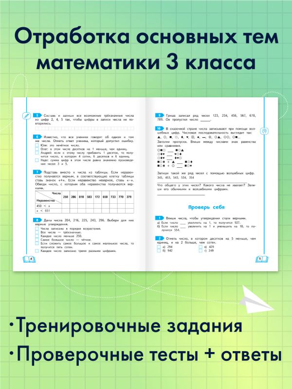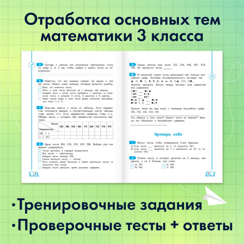 Тренажёр по математике удобен и прост в использовании. Он предназначен для отработки навыков по основным темам математики, изучаемым в 3 классе. Пособие даст возможность ученику закрепить полученные знания. Все разделы организованы таким образом, чтобы школьник сначала мог потренироваться, а затем выполнить проверочные задания, к которым даны ответы.