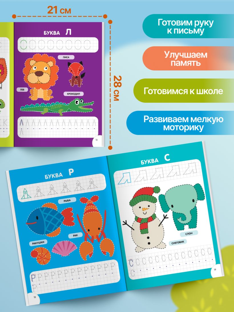Обучающее пособие от издательства «Эксмо» разработано практикующим нейропсихологом и поможет ребёнку развить навыки письма, основываясь на нейропсихологическом методе. Занимаясь, ребёнок будет обводить линии по пунктиру, потренируется в ровном и аккуратном написании письменных букв и их элементов. Нейроразминки помогут проработать движения на моторном уровне, научиться управлять пальцами и кистью руки. Чем лучше ребёнок владеет собственными руками, тем меньше они устают, и тем легче проходит обучение письму. Представленные в книге задания способствуют укреплению межполушарных связей, активизации работы мозга, а также формированию красивого почерка, развитию внимания, пространственных представлений.