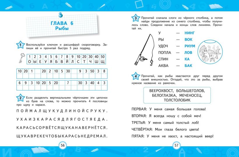 Развивающие задания составлены таким образом, чтобы каждое упражнение продвинуло маленького читателя на шаг вперёд. Книга разделена на 6 больших тематических глав: «Фрукты, овощи и ягоды», «Цветы», «Птицы», «Насекомые», «Дикие звери», «Рыбы», по 14 разноплановых заданий на отработку навыков беглого чтения в каждой. В конце глав имеются ответы для самопроверки.