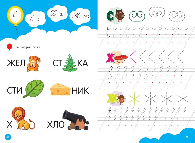 Книга издательства «Эксмо» — это настоящая находка для родителей, чьи дети скоро пойдут в 1 класс. Пособие, соответствующее ФГОС, четко структурировано и отлично подходит, чтобы начать знакомить ребенка с буквами, так как первые знания дошкольник получает одновременно с развитием графических навыков. А написание букв способствует их лучшему запоминанию. Крупные занимательные картинки будут мотивировать ребенка. Занимаясь, дошкольник запомнит образ букв, будет обводить их по контуру, писать в строчках самостоятельно, находить в слове. Внизу каждой страницы имеются значки для оценки выполненных заданий. Поставив галочку в клетках «да» или «нет», ребенок сможет проконтролировать себя, а нарисовав ротик у смайлика вверх или вниз — оценить результат (хорошо / не очень хорошо). Постоянная работа с пособием поможет дошкольнику развить мелкую моторику, графические навыки, внимание, творческие способности, стать более усидчивым и аккуратным. Книга будет полезна девочкам и мальчикам 4, 5, 6 лет для занятий дома или в детском саду. Эти развивашки можно брать собой на дачу или в дорогу, чтобы весело и с пользой провести время. Кроме того, тренажер может стать настоящим подарком для любознательных и активных детей. Если вашему ребенку понравилась книга, то рекомендуем приобрести следующие развивающие пособия серии «Прописи для дошкольников»: «Цифры», «Развивающие прописи», «Развиваем моторику», «Математические прописи».