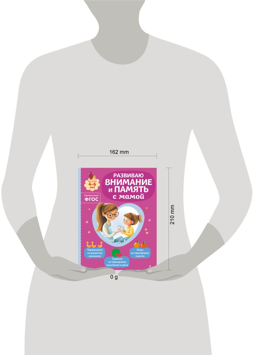 Развитие внимания и памяти — важная часть подготовки к будущему обучению, и развивать их нужно как можно раньше. В нашем пособии мальчики и девочки найдут разноплановые игровые задания, направленные на быстрое усовершенствование этих функций, а также тренировку мышления и речи. Занимаясь, ребенок будет находить отличия на картинках, учить наизусть забавные стихотворения, искать лишний предмет, определять, какая часть подходит к целому изображению, соединять предметы с их тенью, подбирать смысловые пары. Вместе с этим пособием каждое занятие превратится в интересное приключение, и ребёнок не заметит, как пролетит время. Книга-развивашка, предназначенная для совместных занятий мамы и ребёнка, станет надежным помощником в процессе подготовки к школе. Простые задания легко выполнять дома, на прогулке или в дороге. Обучение, проходящее в виде веселой увлекательной игры, поможет ребенку не только развить ключевые навыки, но и почувствовать уверенность в своих силах. Развивающее пособие идеально подойдет для занятий с детьми 4, 5, 6 лет, так как учитывает их особенности восприятия и интересы. Рекомендуем также приобрести другие книги серии: «Читаем вместе с мамой», «Считаем вместе с мамой», «Пишем вместе с мамой», «Развиваем логику вместе с мамой».