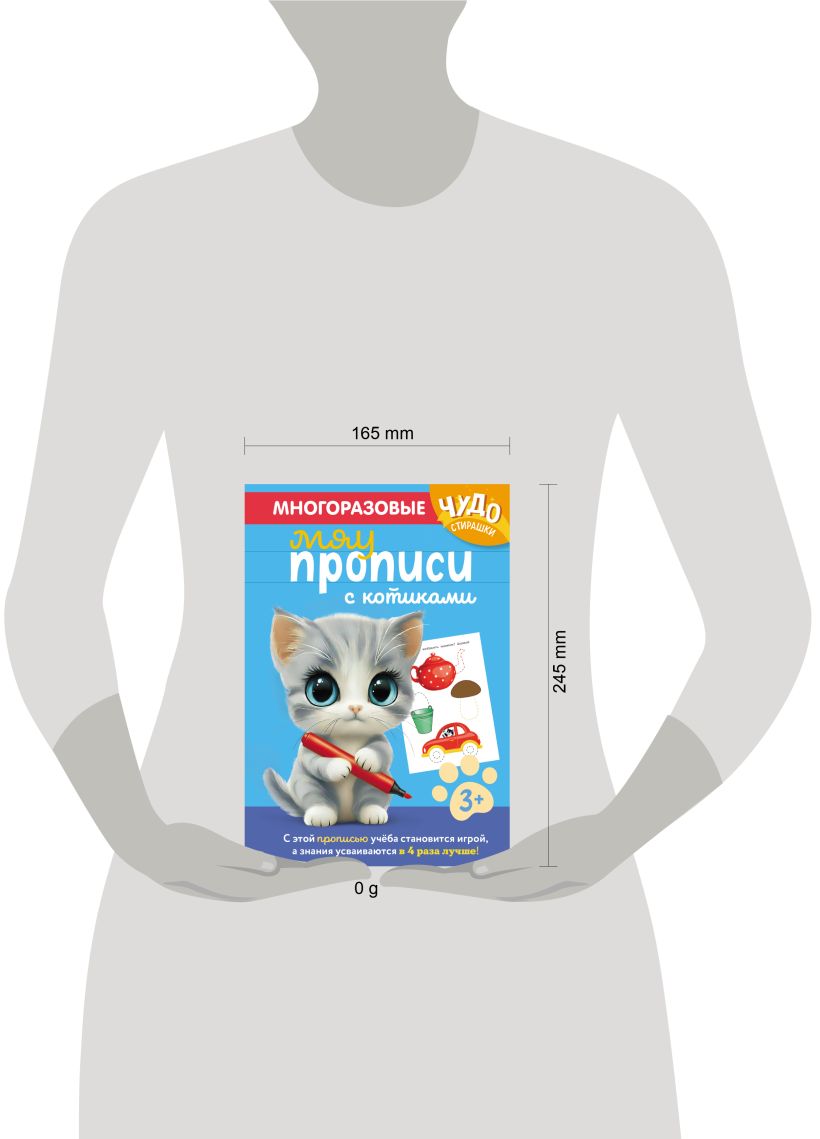 Многоразовые прописи – незаменимый помощник для родителей, которые ценят интеллектуальное развитие и качественный досуг ребёнка. Пособие соответствует ФГОС и предназначено для детей 3-4 лет. Все страницы тетради – ламинированные, а значит, любое задание можно выполнять сколько угодно раз. Понадобятся только обычный фломастер и влажная салфетка, чтобы стирать написанное. С этой книгой легко и быстро можно развить мелкую моторику, аккуратность, логику, познакомиться с числами от 1 до 5, повторить основные цвета и геометрические формы, получить начальные знания об окружающем мире. В каждом упражнении малыша встретят милые котята, которые привлекут внимание, добавят положительных эмоций и превратят обучение в веселый досуг.