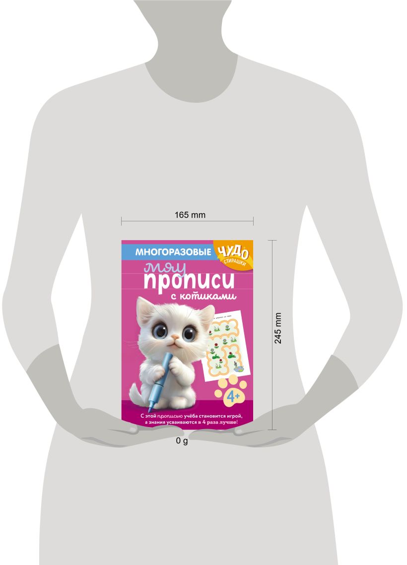 Многоразовые прописи – незаменимый помощник для родителей, которые ценят интеллектуальное развитие и качественный досуг ребёнка. Пособие соответствует ФГОС и предназначено для детей 4-5 лет. Все страницы тетради – ламинированные, а значит, любое задание можно выполнять сколько угодно раз. Понадобятся только обычный фломастер и влажная салфетка, чтобы стирать написанное. С этой книгой легко и быстро можно развить мелкую моторику, аккуратность, логику, внимание, мышление, познакомиться с числами от 1 до 10, с образом букв, повторить цвета и геометрические формы. В каждом упражнении малыша встретят милые котята, которые привлекут внимание, добавят положительных эмоций и превратят обучение в веселый досуг.