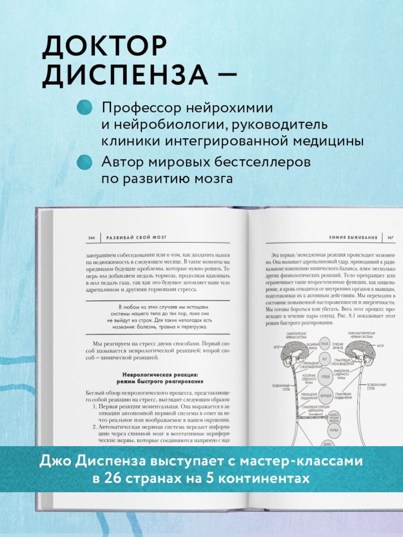 Доктор Диспенза — профессор нейрохимии и нейробиологии, руководитель клиники интегрированной медицины. Автор мировых бестселлеров по развитию мозга. Джо Диспенза выступает с мастер-классами в 26 странах на 5 континентах. Он обучил тысячи людей, как перенастроить свой мозг и тело, чтобы улучшить здоровье и жизнь. Диспенза — первый автор, которому удалось понятно, доступно и на научном языке объяснить работу подсознания.
