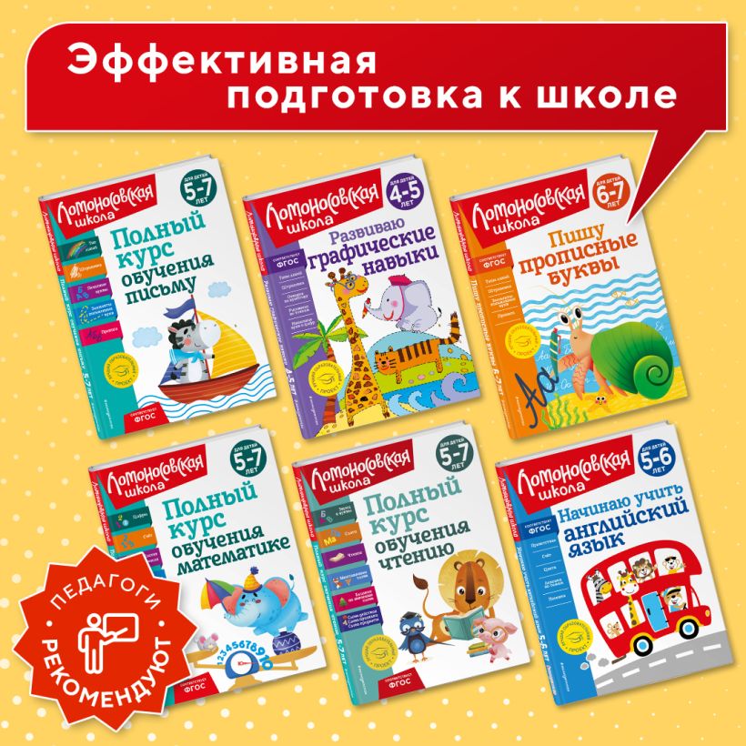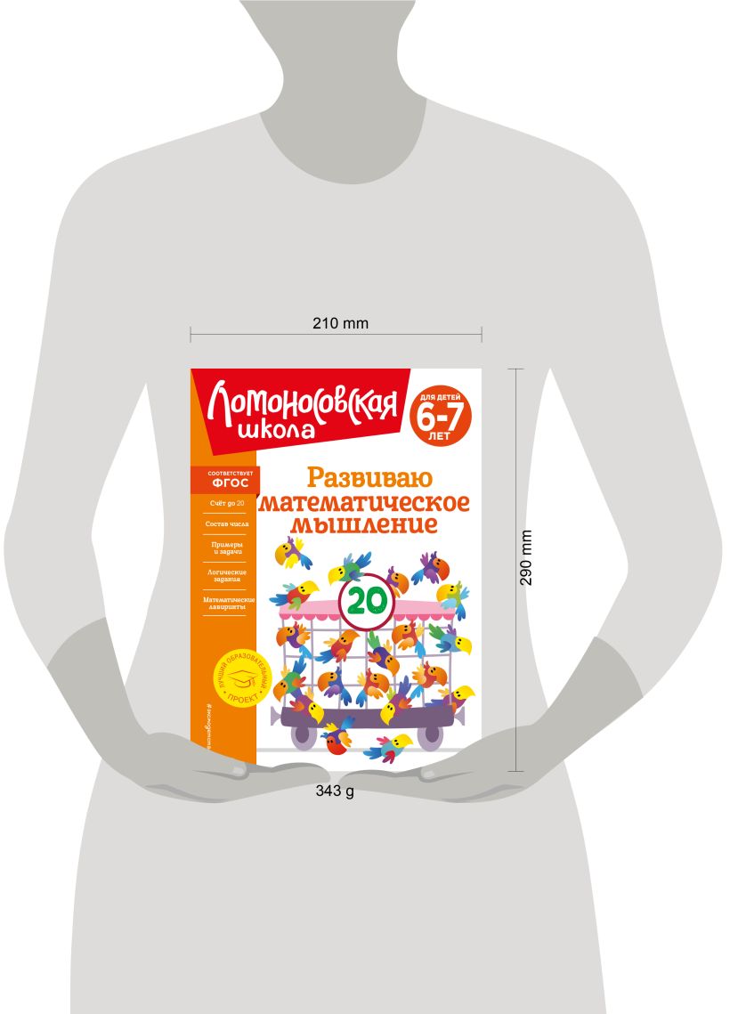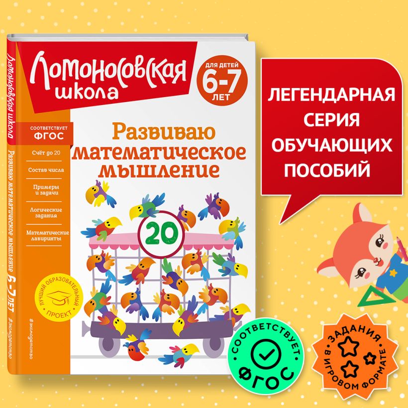 Новая книга от издательства «Эксмо» в самой популярной серии «Ломоносовская школа» для занятий в детском саду или дома. Основная задача пособия — развитие у детей математических способностей и эффективная подготовка к школе по математике. Выполняя интересные игровые задания, ребенок познакомится с числами первого и второго десятка, понятиями «больше», «меньше», «равно», порядковым счетом, научится сравнивать предметы по количеству, считать до 100, складывать и вычитать десятки, писать цифры, решать примеры с помощью числовой прямой. По книге можно заниматься несколько лет, если ребенку 5 лет, а можно пройти ее за год, если ему скоро в школу. Во время занятий малыш не будет отвлекаться, так как все задания даются в игровой форме, а яркие цветные картинки сразу привлекут внимание любознательного непоседы. Кроме того, в развивающей книге для детей приведены упражнения, которые будут способствовать развитию сообразительности, зрительной памяти, наглядно-схематического мышления, графических навыков. Пособие будет отличным подарком ребенку, который готовится к будущему обучению. Знания, умения и навыки, которые ребенок приобретет в результате занятий, позволят ему почувствовать уверенность в себе и в дальнейшем успешно их использовать.