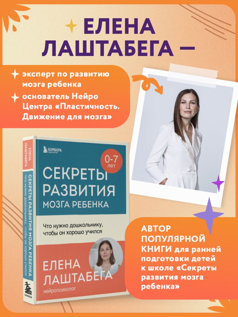 Елена Лаштабега — нейропсихолог, эксперт по развитию мозга ребенка. Автор популярной книги для ранней подготовки детей к школе «Секреты развития мозга ребенка». Основатель НейроЦентра «Пластичность. Движение для мозга». Ее уже знают более 200 000 родителей.
