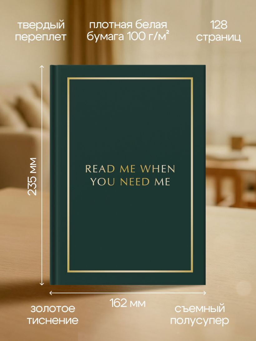 Этот блокнот — как тихий голос рядом, но с одной важной особенностью: его слова создаете вы сами. Внутри — 126 страниц с мягкими подсказками «Прочти меня, когда тебе...». Каждая из них — приглашение написать короткое письмо, воспоминание, шутку или пожелание для близкого человека.