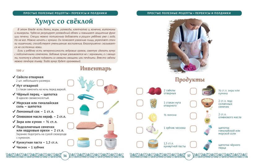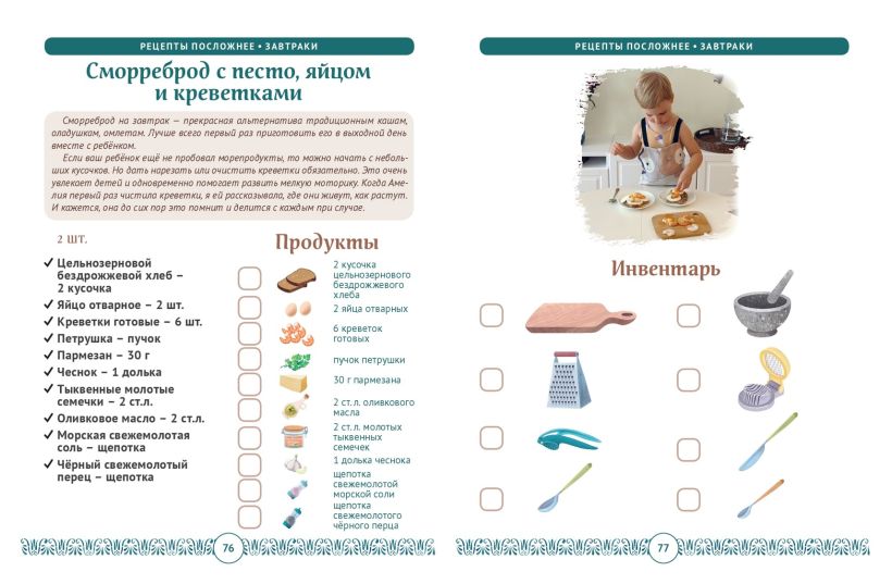 Визуализация каждого шага и ингредиентов внутри рецепта позволит готовить даже не умеющим читать детям. Все блюда сбалансированы и максимально полезны. Совместная готовка развивает у ребёнка привычку правильно питаться, помогает расширить рацион и воспитывает самостоятельность.