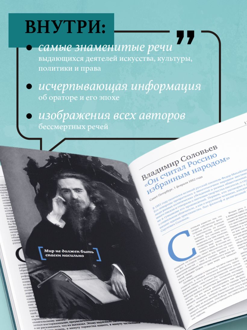 Это подарочное издание представляет бессмертные слова Сократа, Достоевского, Черчилля, Гагарина и многих других, включая наших современников, например, Барака Обамы и Ангелы Меркель. Эти люди меняли мир своими выступлениями, создавали новые страны, религии, целые философские школы.