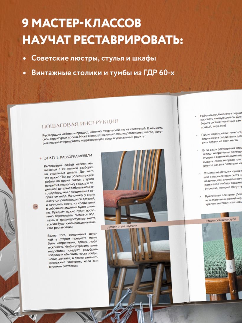 Эта книга предлагает простые в использовании техники, с помощью которых можно подарить новую жизнь разным предметам мебели: от советских стульев из шестидесятых до тумб родом из ГДР.
