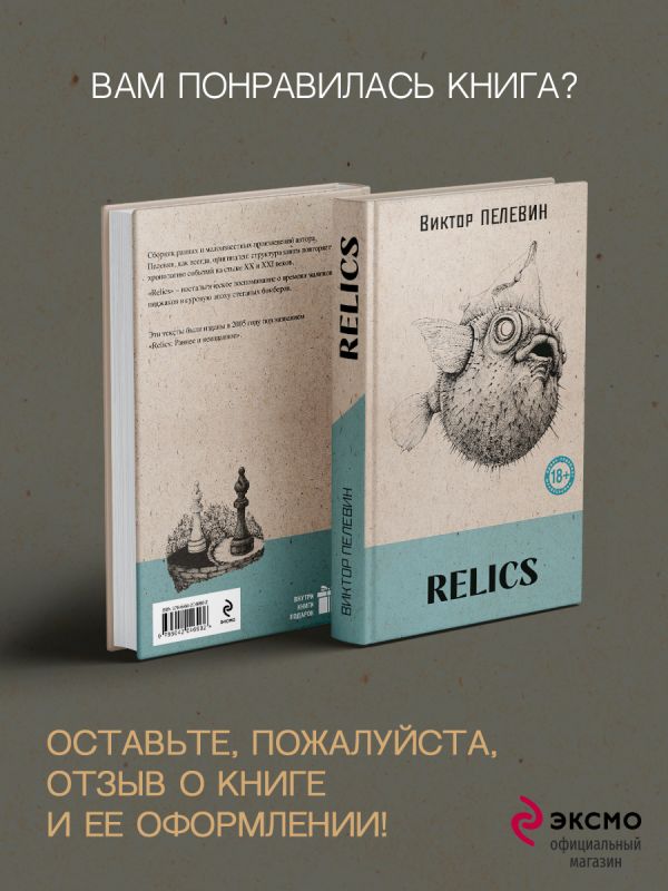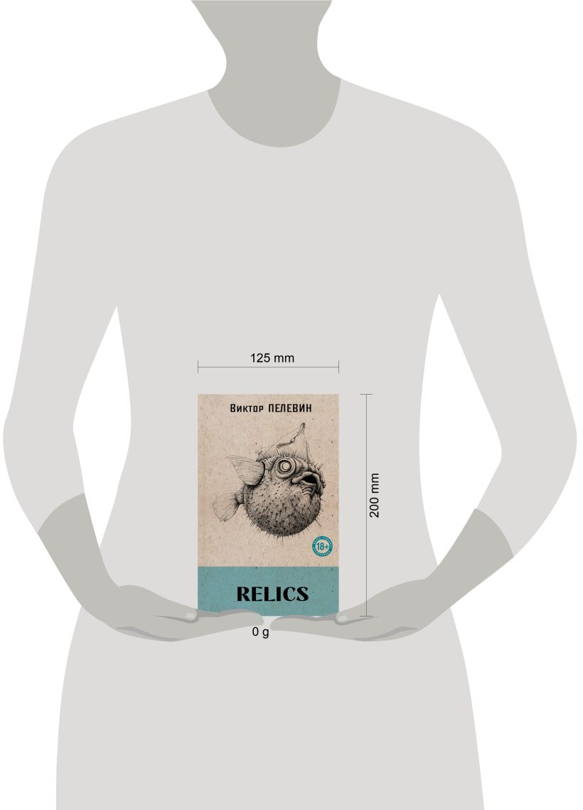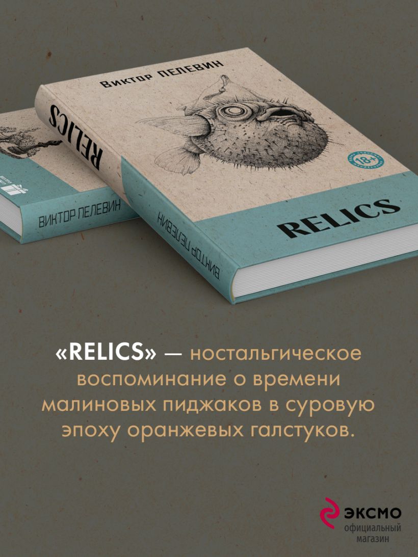 Книга Виктора Пелевина «Relics» со стикерпаком внутри.
