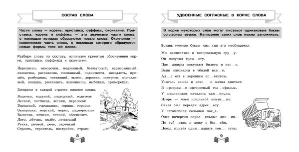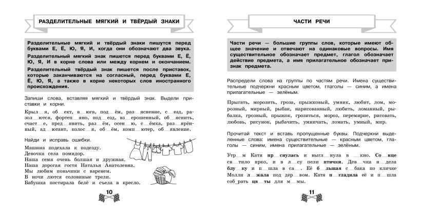 Пособие по русскому языку от издательства «Эксмо» подготовлено в соответствии с требованиями ФГОС для начальной школы и может быть использовано с любым из действующих учебников для 3 класса. Удобный тренажер с интересным современным макетом поможет ребенку улучшить грамотность, восполнить пробелы, углубить и систематизировать знания. Занимаясь, школьник не только повторит правописание безударной гласной в корне, приставок и предлогов, безударной гласной в падежных окончаниях, потренируется различать простые и сложные предложения, но и научится работать по плану, то есть выполнять определенный алгоритм действий, который поможет ему осознанно применять правила. Когда навык грамотного письма будет доведен до автоматизма, результат в виде твердых знаний и отличных оценок не заставит себя ждать.