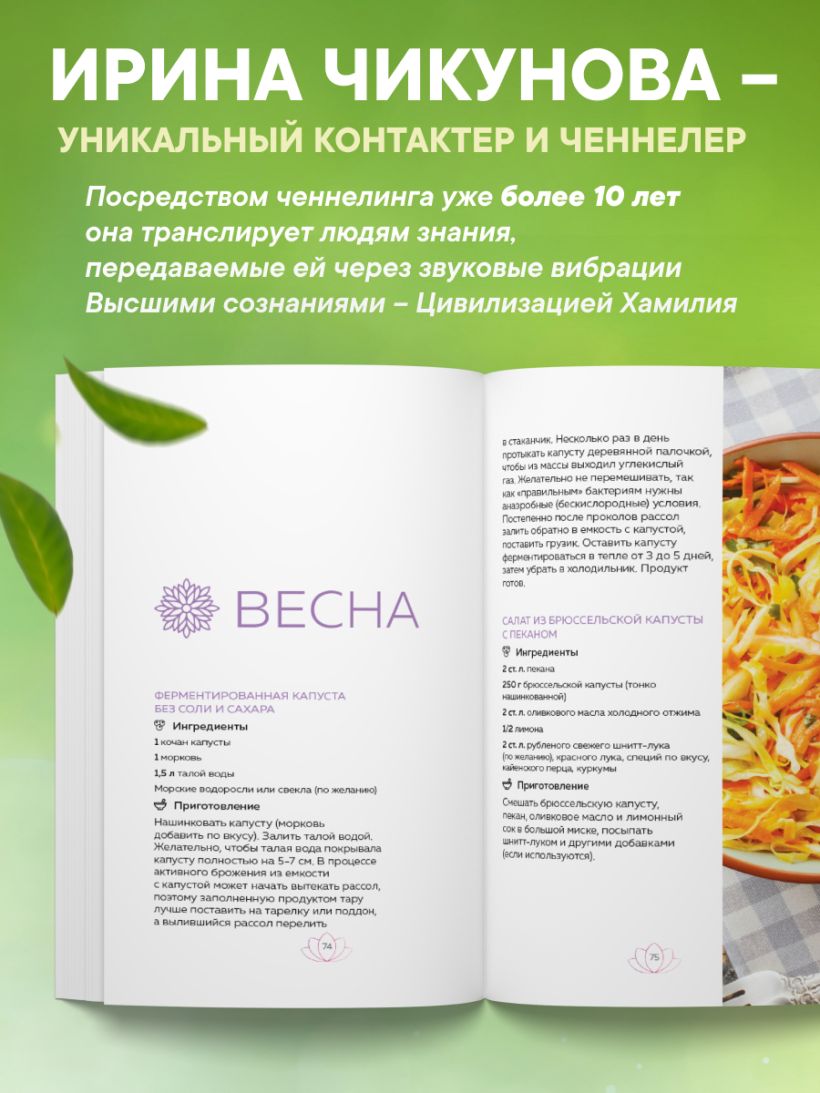 «Рецепты для ресурсной, качественной и здоровой жизни. Цивилизация Хамилия» — уникальная и совершенно особенная книга. Ирина Чикунова — ченнелер и проводник энергий мирового уровня. Она точно знает, что быть здоровой, гармонично развитой личностью абсолютно реально. В своей новой книге Ирина транслирует переданные Хамилией советы и рецепты, как полностью изменить свое отношение к еде, режиму питания, но главное — к самому смыслу своей жизни. Не просто обновить ее с помощью правильных продуктов, их сочетаний, но сознательно повысить качество своего существования в самой основе. Трансформируя себя, вы трансформируете свою энергию, свои вибрации и выходите на совершенно новый уровень — важная тема книги, в которой Хамилия раскрывает Систему ресурсных программ питания, предлагая новые инструменты, помогающие вам в работе над собой.