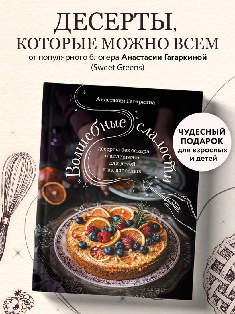 Автор книги Анастасия Гагаркина sweet.greean.chef уже научила десятки тысяч женщин печь вкусные и действительно полезные десерты без рафинированного сахара, без белой муки, молока и яиц, присоединяйтесь!