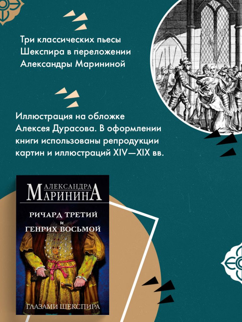 В новом историческом очерке Александра Маринина остроумно и увлекательно разбирает творчество гениального бытописца той эпохи — в фокусе внимания знаменитые трагедии Шекспира «Ричард Третий» и «Генрих Восьмой».