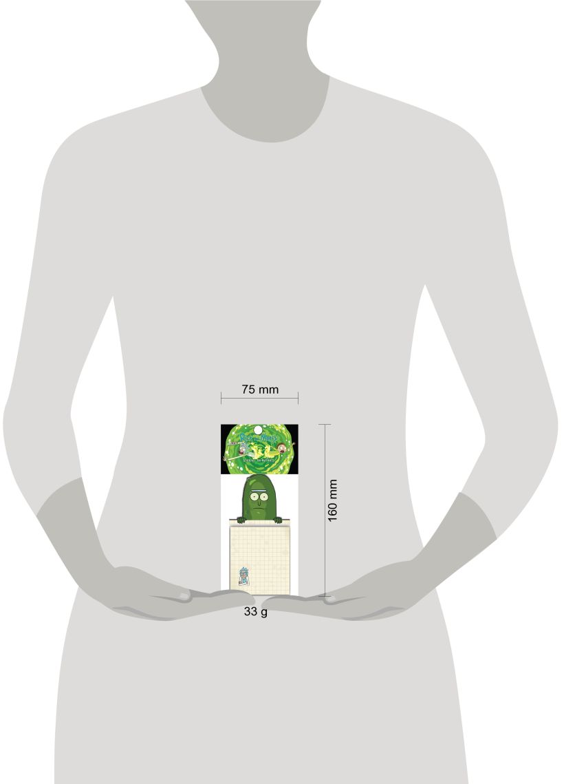 — В общем, чего только во вселенной не происходило, но такого еще не было: Рик-огурчик стал блокнотом на магните! Ну, чего же ты ждешь? Заказывай его скорее!