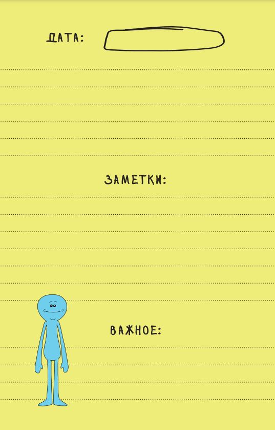 Яркий лицензионный ежедневник по мотивам самого популярного мультфильма с огромной фанатской аудиторией — «РИК И МОРТИ»! Известные на весь мир дед и внук спасли уже множество вселенных, а теперь пришли помочь тебе научиться планировать наперед и ничего не забывать.