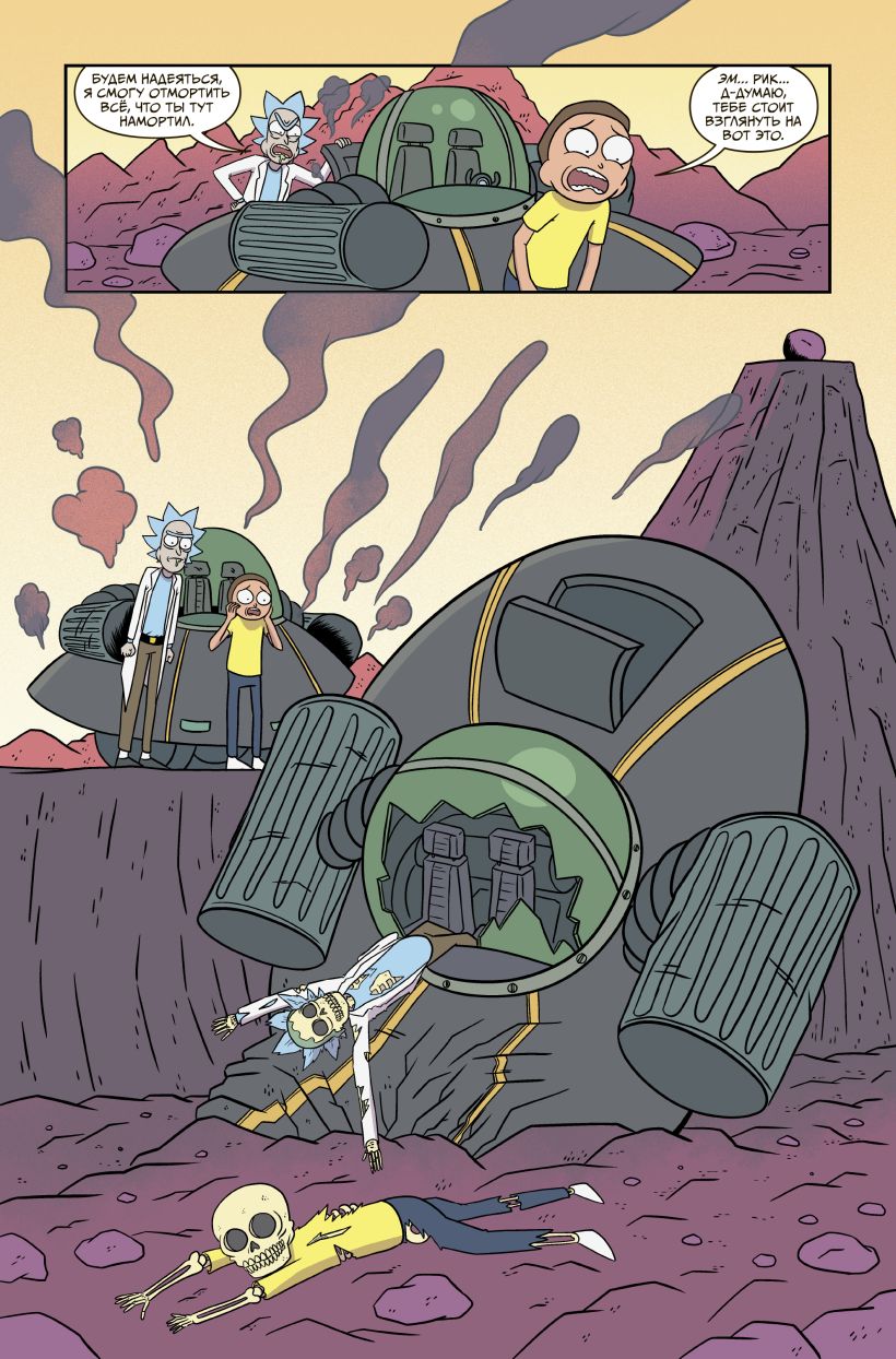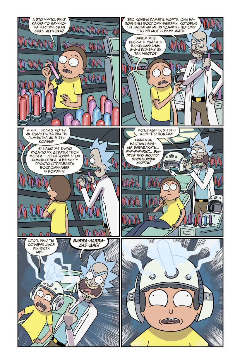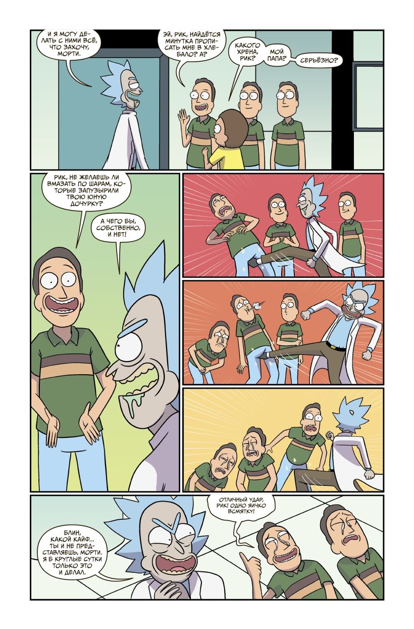 Готовьтесь, на ваши полки врывается новая порция настолько отбитых приключений Рика и Морти, что по телевизору их не покажут! Хотите попасть в «Мир Риков», где любой Рик может выпустить пар? Пристёгивайте ремни! Морти находит нормального друга! Не верите? Сами посмотрите! А если пацану достанется мощная боевая броня? Что может пойти не так? ДА АБСОЛЮТНО ВСЁ! Сама Вселенная окажется на грани гибели...