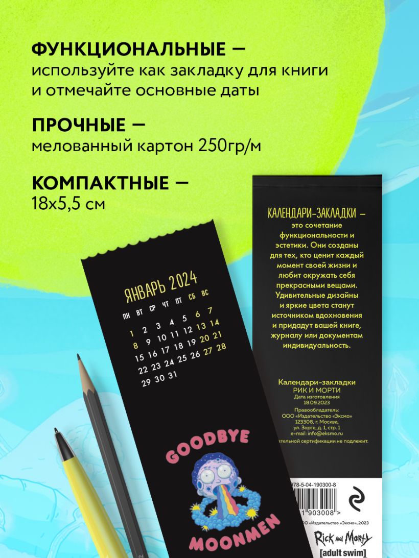 Рик и Морти. Календари-закладки на 2024 год (12 шт., на перфорации)
