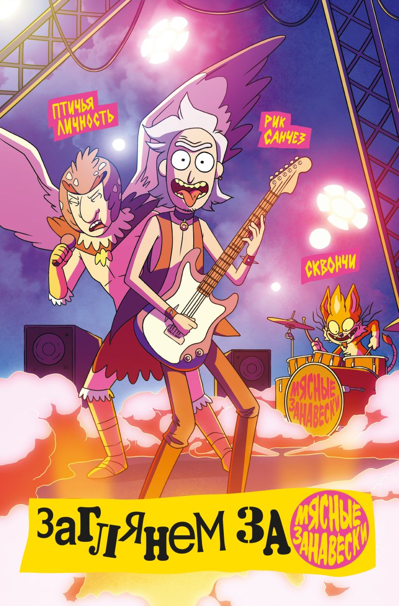 Узнайте самую правдивую историю легендарной группы Рика, Птичьей Личности и Сквончи! В жизни каждый рок-банды наступает момент, когда хочется оставить сцену, ведь деньги и слава не спешат обрушиться на голову. Кто-то плюет на всё и идёт работать в офис, кто-то верит в мечту и в итоге добивается своего, но Рик Санчез не относится ни к первым, ни к вторым! Он быстренько изобретает устройство, которое создаёт музло, которое обречено стать самым популярным в вселенной! Но в нём нет души... Что выберут "Мясные занавески": сыграть настоящий рок, произвести впечатление на своего кумира и задолжать кучу денег инопланетному бандосу или пойти по лёгкому пути и до конца жизни купаться в богатстве и популярности?
