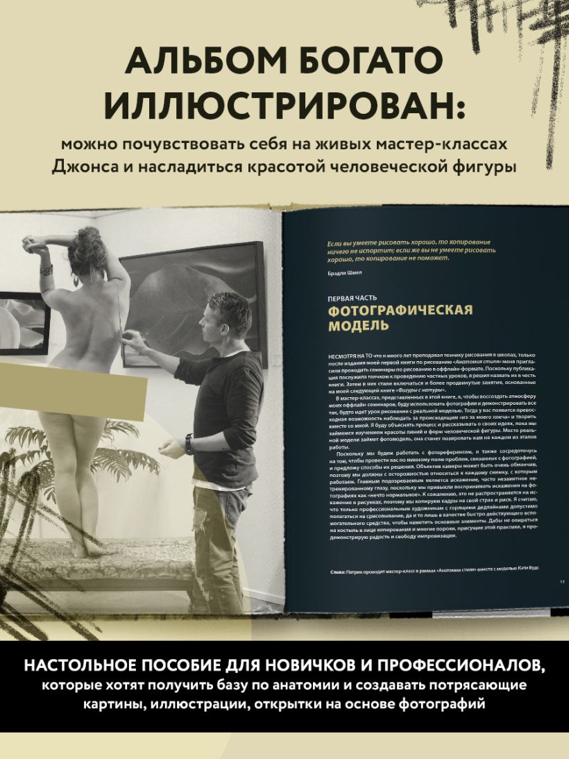 Перед вами — впервые опубликованная на русском языке серия мастер-классов известного художника и педагога Патрика Джонса. В емком, но от этого не менее содержательном пособии вы узнаете, как рисовать фигуру человека и грамотно подбирать референсы при отсутствии живой натуры. Автор делится своим многолетним опытом работы с рисунком и иллюстрацией. Каждый раздел дополнен вспомогательными заметками и комментариями по изображению человека и особенностям анатомии строения.
