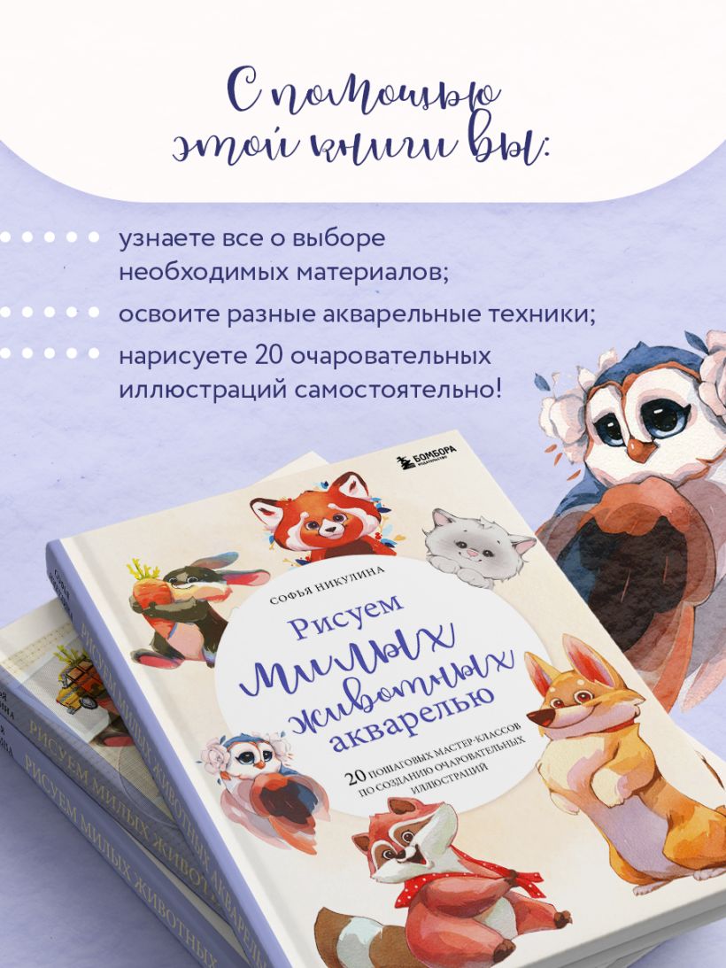 Красочное руководство по созданию иллюстраций милых животных воздушной акварелью от популярной художницы Софьи Никулиной! На страницах книги вас ждут пошаговые уроки по рисованию самых очаровательных зверей — от милого котика, пушистого корги и воркующих попугайчиков до красной панды, забавного енота и снежного барса!