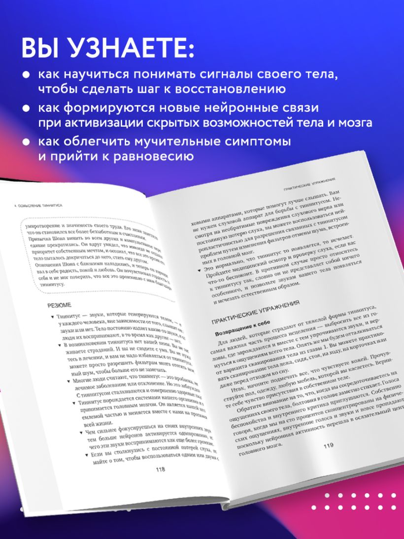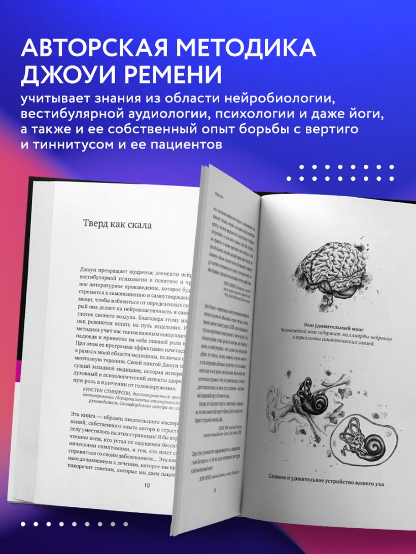 При создании методики, представленной в книге, Джоуи Ремени учитывала не только знания из области нейробиологии, вестибулярной аудиологии, психологии и даже йоги, но и собственный опыт борьбы с вертиго и тиннитусом, а также опыт своих пациентов. Автор расскажет, как научиться понимать сигналы своего тела, как формируются новые нейронные связи, как облегчить мучительные симптомы и прийти к равновесию.
