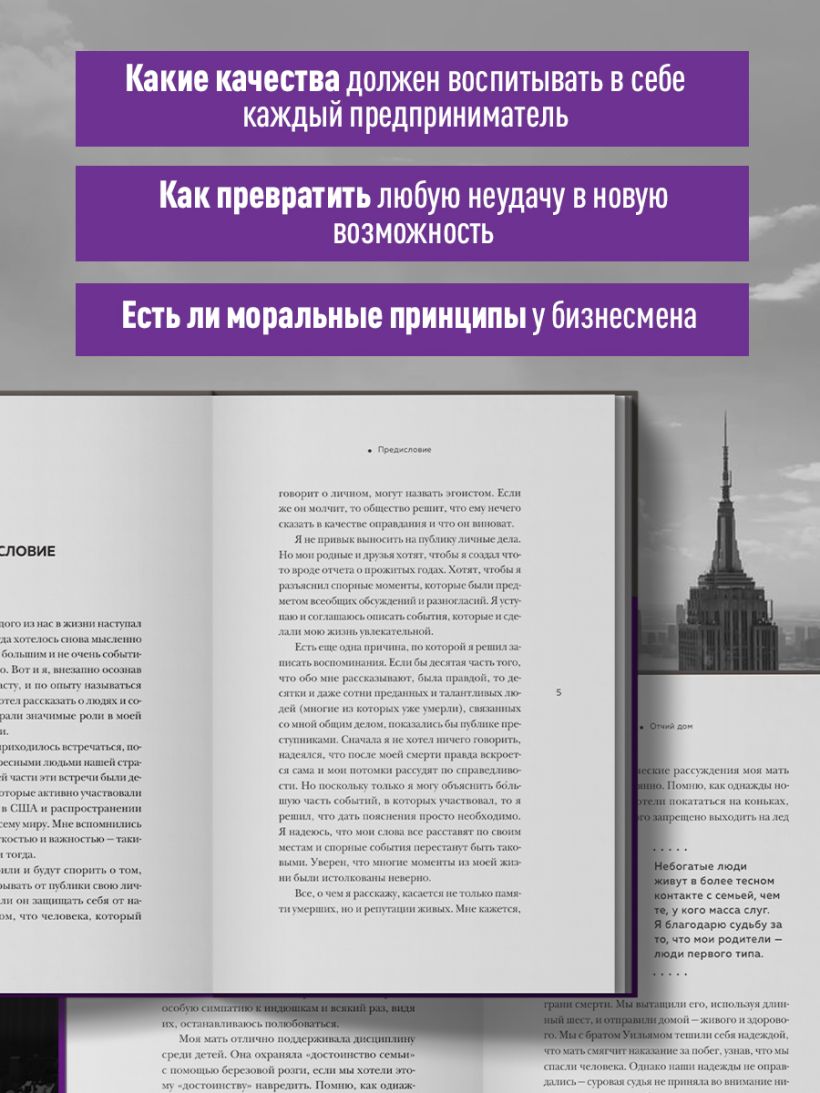 В этой книге Рокфеллер рассказывает о своем пути к богатству, правилах успеха, моральных принципах бизнесмена и качествах, которые должен воспитывать в себе каждый предприниматель. Вы научитесь достигать поставленных целей и узнаете, как превратить любую неудачу в новую возможность.