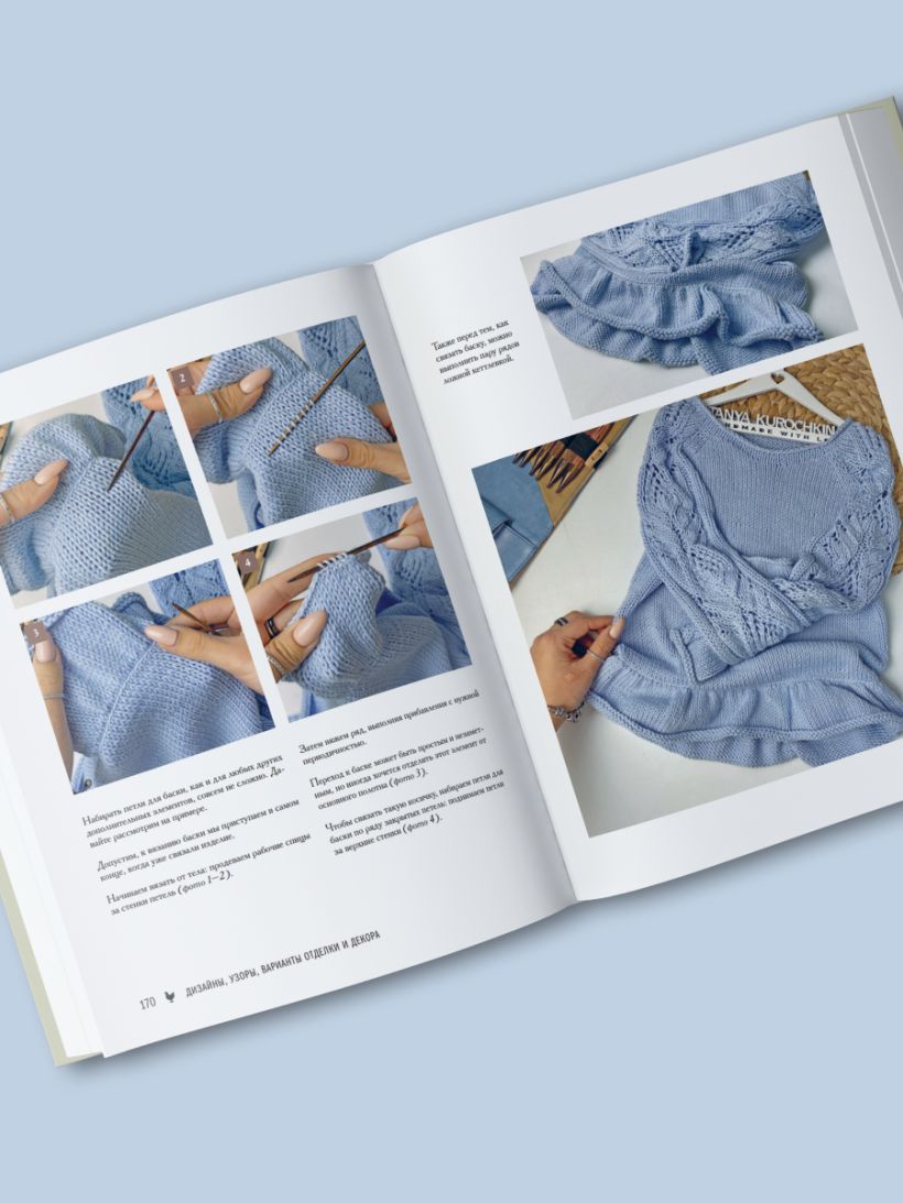 «Я дам пошаговый алгоритм создания изделия. Все — от идеи до последнего заправленного кончика нити. Я расскажу и покажу это в деталях, наглядно и подробно. Идеальный паззл, где каждая деталь точно подходит к другой и встает на своем место, создавая уникальный образ. Не связать будет просто невозможно!» — обещает Таня Курочкина, автор этой уникальной книги.