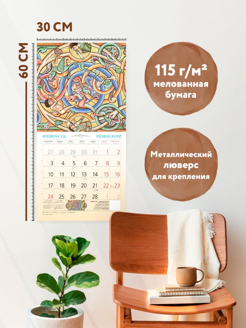 Наши настенные календари отличаются высоким качеством исполнения! Тщательно подобранные иллюстрации, напечатанные на глянцевой бумаге высочайшего качества, станут настоящим украшением дома, а в календарной сетке найдется место для ваших планов: большие клетки позволят делать записи и организовать свой год! В календаре также отмечены все государственные праздники.