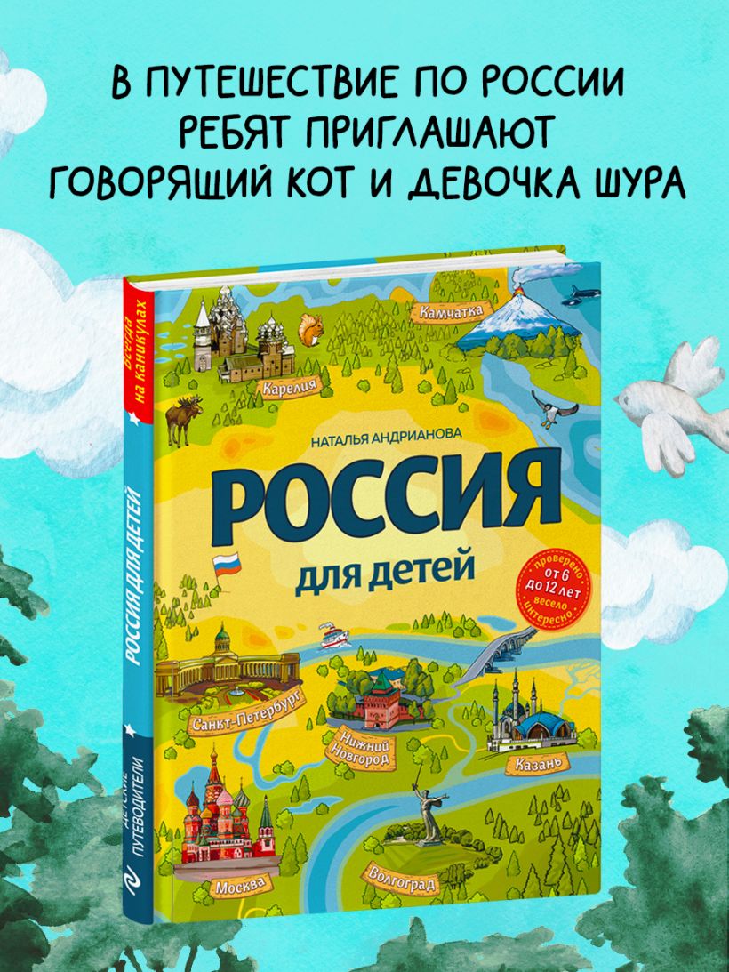 Отправляясь в увлекательное путешествие по самым главным рекам России и великим городам на них, маленький читатель узнает все самое важное и интересное о своей Родине. Герои книги — любопытная девочка Шура и Золотая рыбка Злата — помогут увлекательно провести время, решить множество занимательных головоломок, ребусов и интересных заданий. С этим путеводителем вы убедитесь в том, что у России богатая история, невероятная природа, удивительная архитектура и уникальные народные промыслы. Вы прогуляетесь вдоль рек: • Москва-река, • Нева, • Дон, • Волга и Кама, • Урал, • Обь и Иртыш, • Енисей и Ангара, • Лена. Отправляйтесь в свое самое интересное путешествие вместе с героями книги и узнавайте Россию вместе с «Детским Путеводителем»!