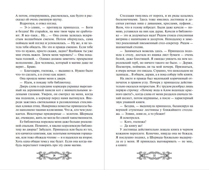 В противовес Элвину образ Шериады как будто собран из всего самого тёмного, но с некоторой долей гиперболизации. Маленькая, юркая, привлекательная, она в то же время смертельно опасна, невероятно сильна и так же невероятно умна. Будучи приближённой королевы Сиренитти, Шериада вольна делать едва ли не всё. И она без зазрения совести убивает направо и налево, отрубает головы, пускает кровь, вырезает органы… или рассказывает о том, когда, как и с кем сделала подобное. И нет, она не преувеличивает – она действительно такая. Человеческую сторону Шериады читатель видит пару раз, как и сам Элвин, но этого достаточно, чтобы понять: если Элвин пойдёт тем же путём, он, скорее всего, станет подобным ей. Шериада – это возможный вариант будущего для Элвина. Он и сам это понимает, потому всеми силами старается помнить о своей главной цели: обеспечить безопасность семьи. И никого не убивать.