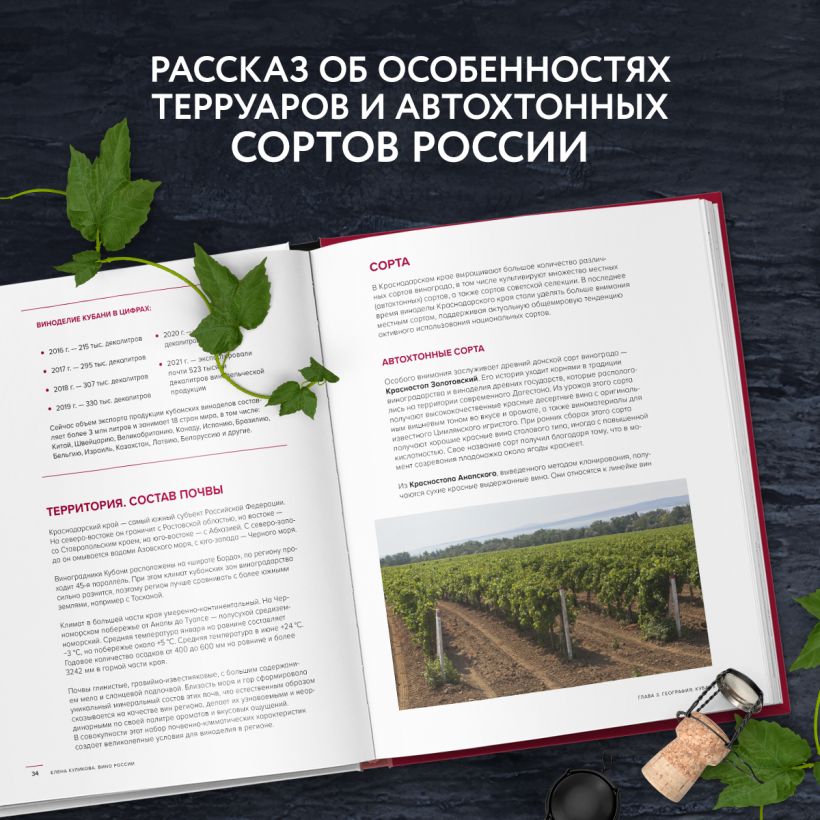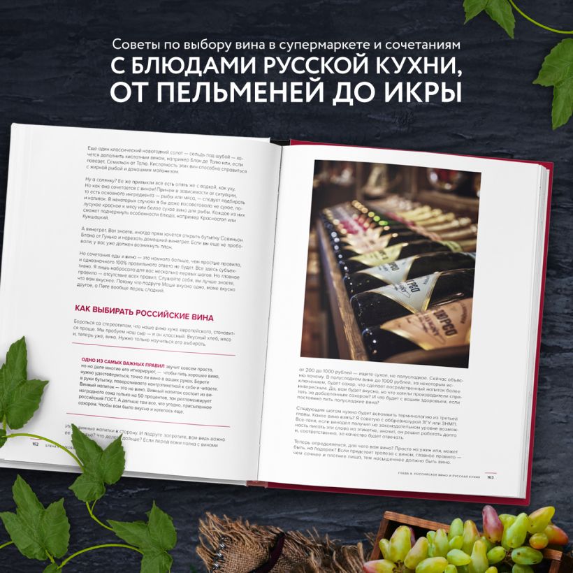 Новая книга авторитетного винного эксперта Елены Куликовой написана для каждого, кто хочет научиться выбирать хорошее отечественное вино. Вместе с автором вы посетите лучшие российские винодельни и познакомитесь с людьми, которые создают этот напиток; совершите экскурс в историю отечественного виноделия, откроете для себя новые винодельческие регионы — от Самары до Дербента. Узнаете об особенностях их климата, терруара, почвы и сортов винограда. Каждый, прочитавший эту книгу, поймет и научится оценивать российское вино. Теперь, проходя мимо полок супермаркетов, вы будете ориентироваться не на акцию, а на регион, сорт, винодельню и на сочетание еды и вина. Приятных вам открытий в мире российских вин и вкусных дегустаций!