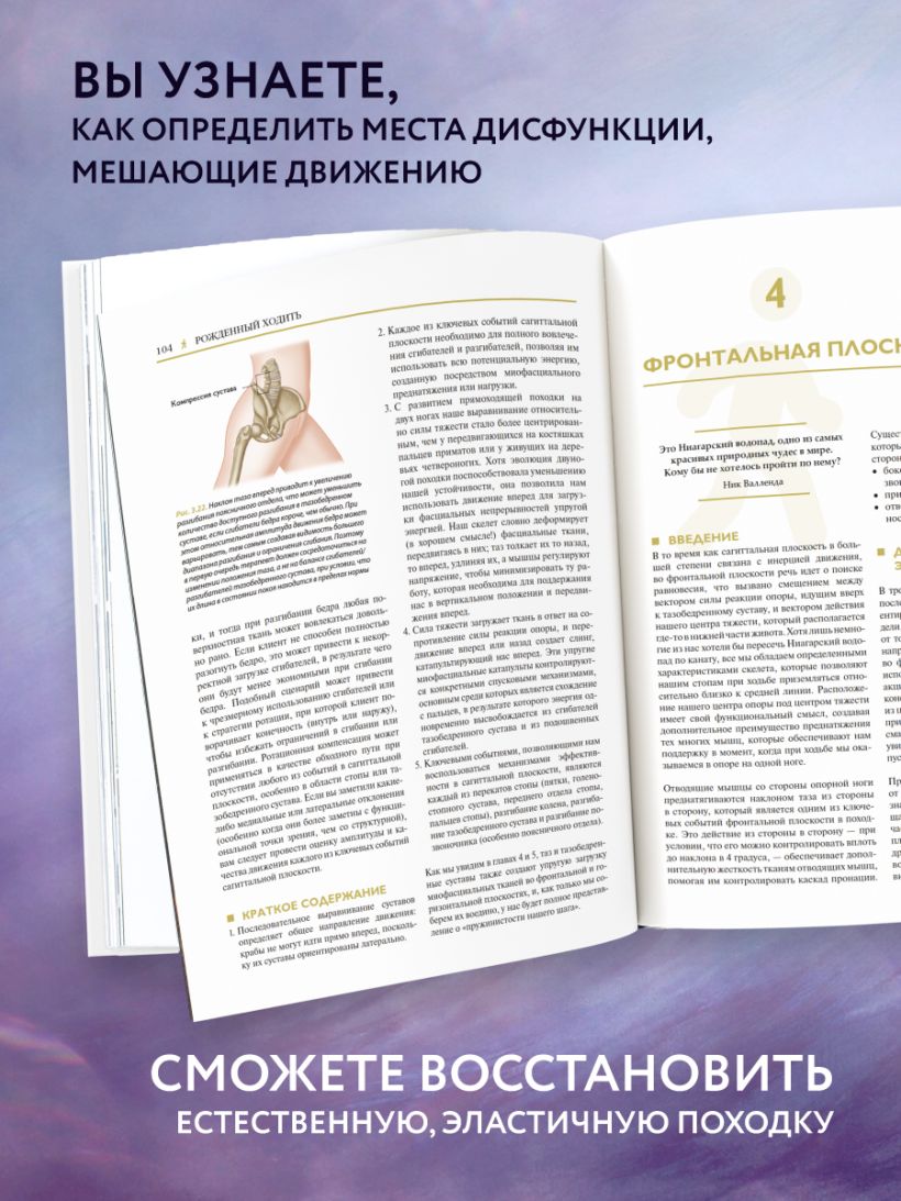 Пришло время наконец поженить эти два подхода, и книга «Рожденный ходить» если и не подводит их к алтарю, то, по крайней мере, заявляет об их помолвке. Физиотерапевт найдет в этой книге много конкретики и изолирующих тестов для определения мест дисфункции, в которые можно погрузиться с головой, при этом сама модель построена на классической теории походки. Холистический практик также обнаружит здесь множество возможностей для того, чтобы наполнить идею «все связано» практическим смыслом, основанным на советах относительно того, как увидеть и диагностировать проблему и работать с движением человека.