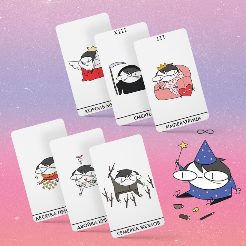 Удивительная колода Таро, проиллюстрированная художницей Жре Крипяо, ловко подмечающей забавные и злободневные жизненные ситуации.