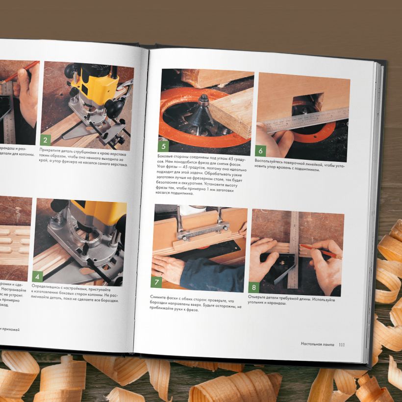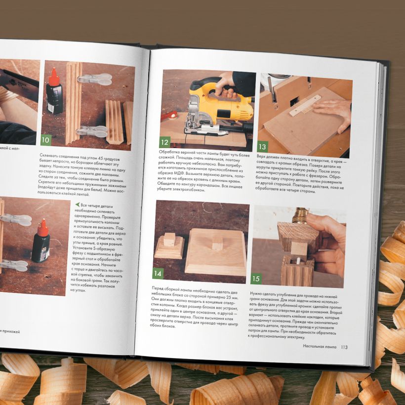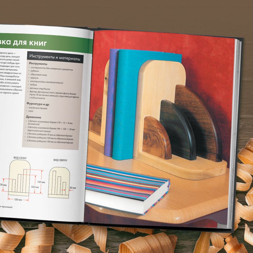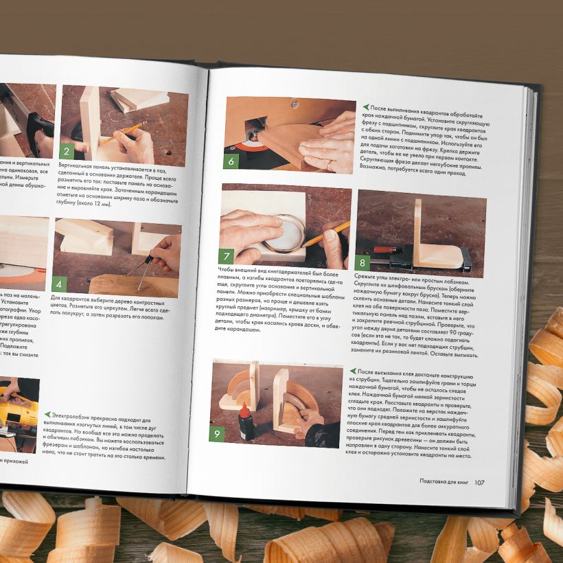 - основные техники работы по дереву: от измерения и разметки доски до изготовления соединительных деталей и итоговой отделки изделия;
