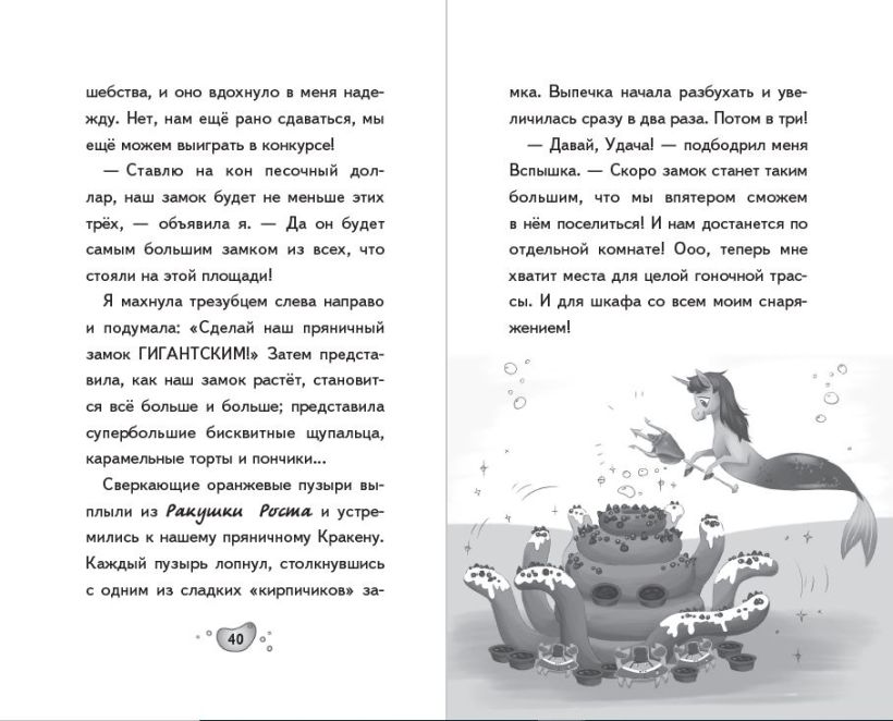 Пряничный Кракен! Он такой чудесный! Мы сделали его с друзьями для кулинарного конкурса. Руби фантастически готовит, я неплохо рисую, а Нелия обладает магией, без которой нам не обойтись. Но когда мы увидели творения других конкурсантов, наши хвосты и рожки поникли. Их постройки выглядели великолепно, да ещё и были выше нашего Кракена. И как же мы теперь выиграем конкурс? Кажется, у меня есть одна идея, только она, как всегда — безумная!